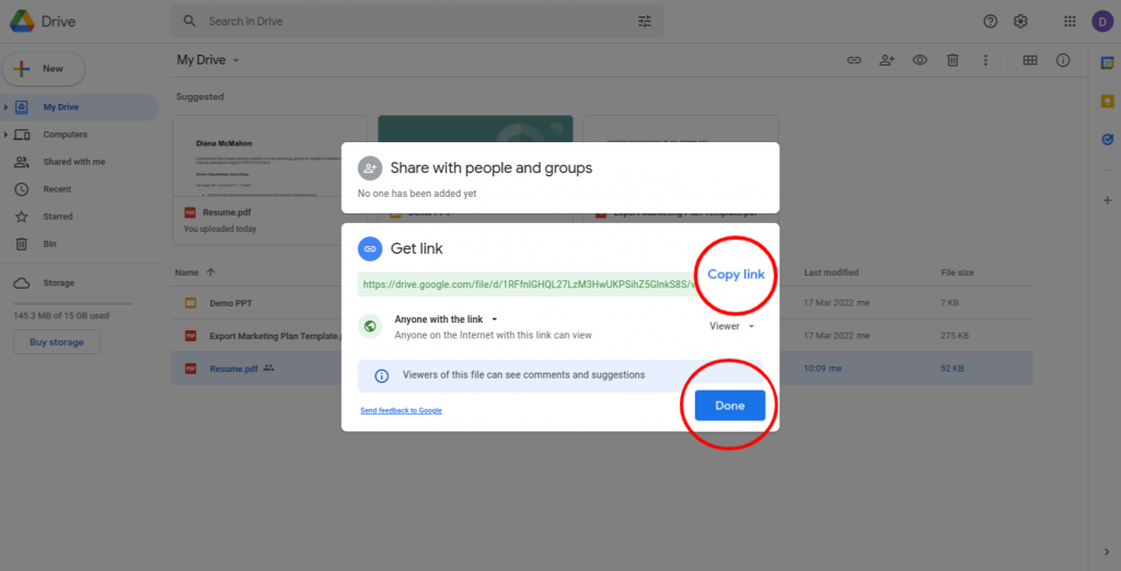 Click on ‘Copy link’ and then click on ‘Done.’