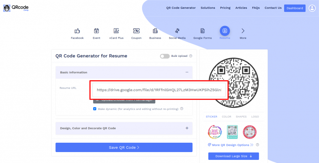 How to create a Resume QR Code by uploading the resume file on Google Drive?