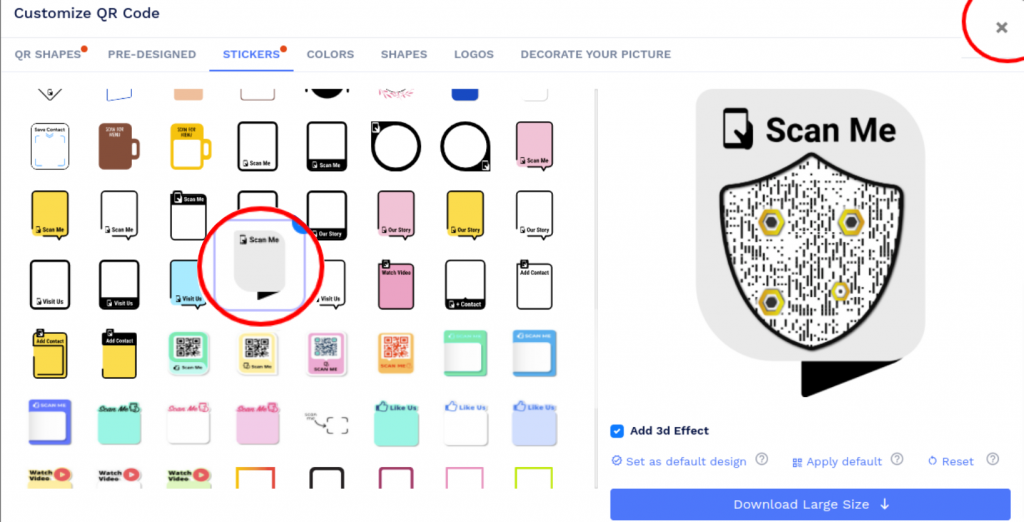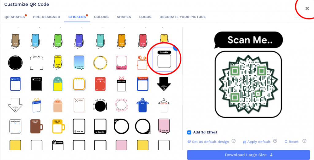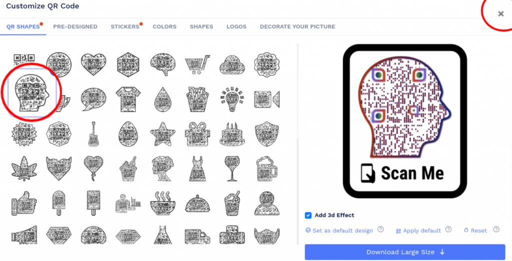 Note: Click on the ‘x’ icon of the ‘Customise QR Code’ popup to save changes.